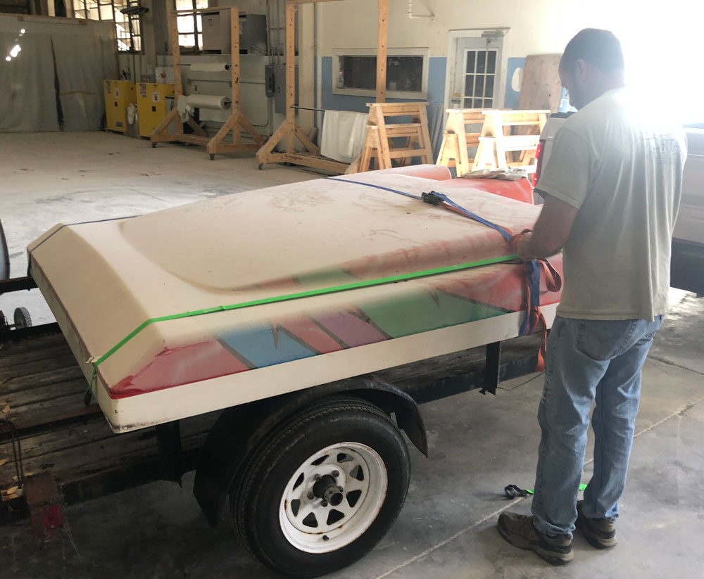 I HAD THE INTERIOR SHOP STOP ALL THEIR WORK ON THE BOAT IMMEDIATELY AND TOLD THEM TO JUST THROW ALL OF THE INTERIOR PIECES IN THE COCKPIT AND CABIN. BOBBY DROVE OVER AND PICKED IT UP THE NEXT DAY.